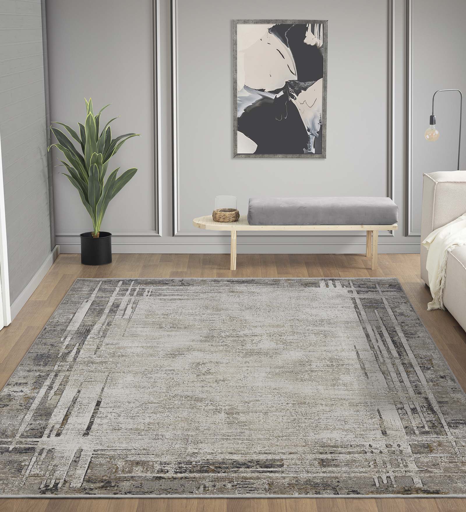 Alan Polypropylene Neo Classical Runner Grey and Rust