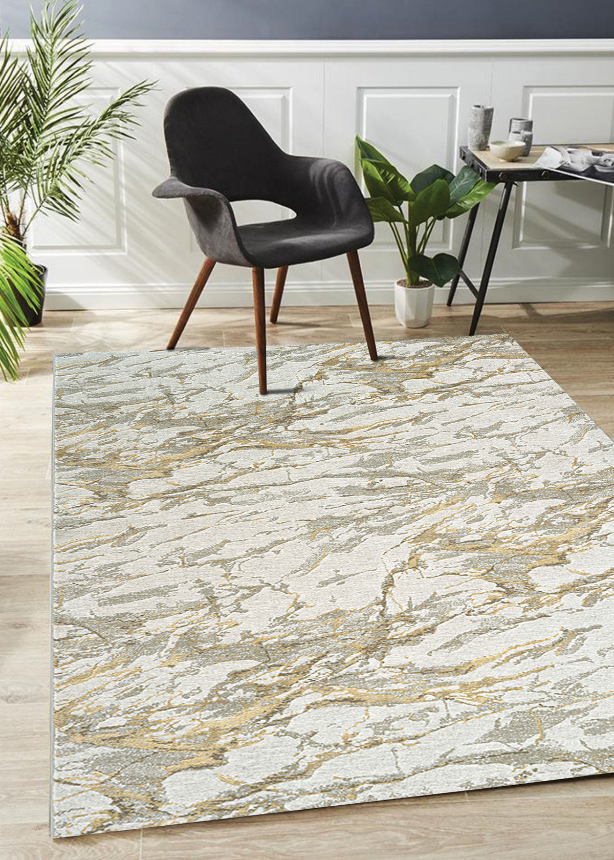 Platinum Abstract Machine Made Runner Grey and Musterd