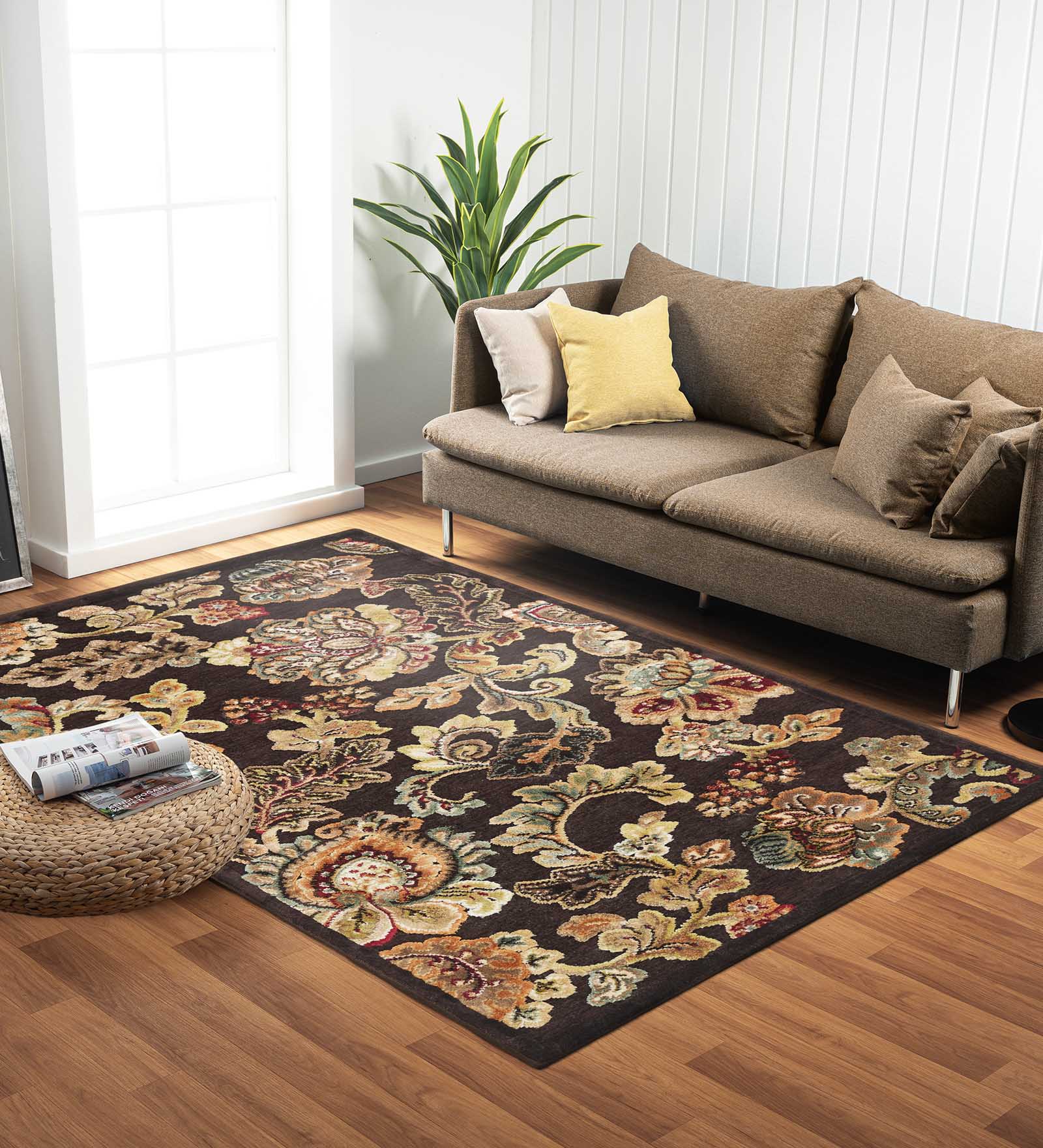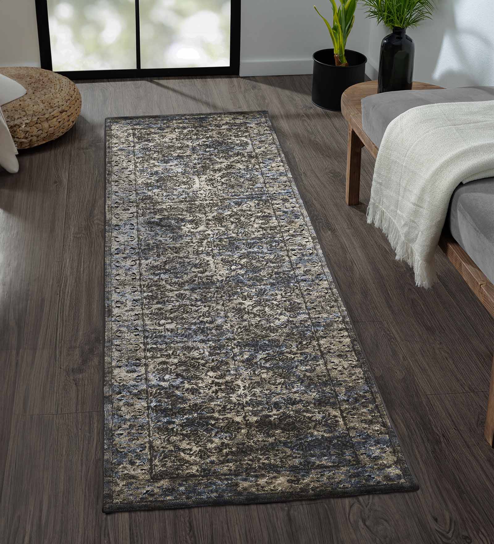 Alan Polypropylene Floral Runner D.Grey and Cream