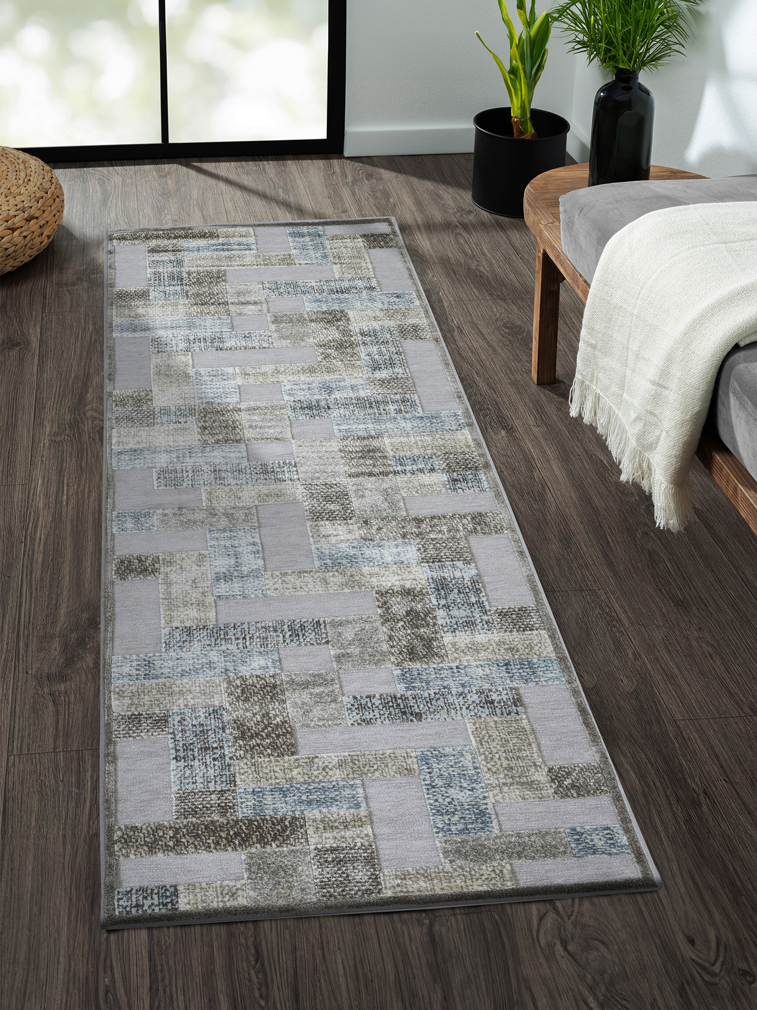 Aquarius Abstract Machine Made Runner Beige and Brown