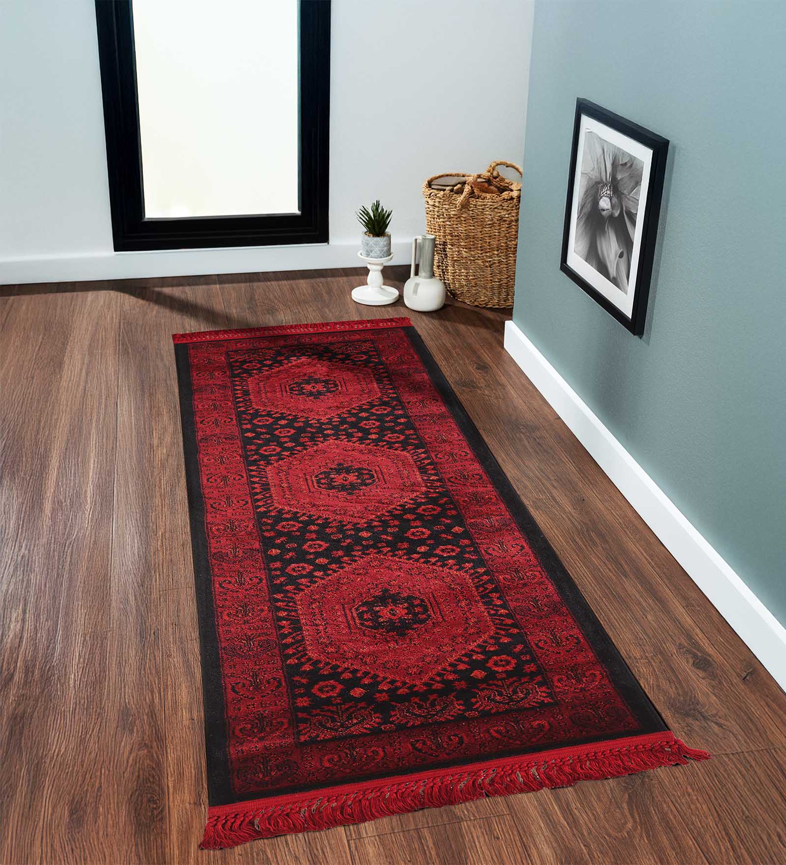 Afghan Classical Bedside Runner Red and Black